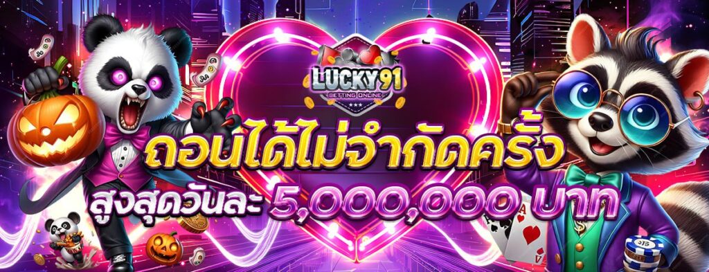 แต่ LUCKY91 ไม่เล่นแบบนั้นครับ ถ้าแตกได้กี่บาท อยากถอนเท่าไหร่ก็ตามสบาย ถอนได้ “ไม่จำกัดครั้ง” และที่โหดคือ สูงสุดวันละ 5 ล้านบาท ใช่ครับ ฟังไม่ผิด! ห้าล้านบาทต่อวัน